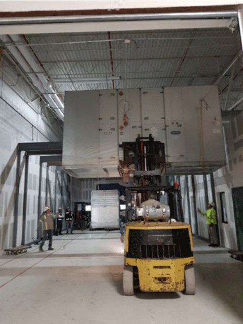 Sistema de aire acondicionado para área de producción de 11,030 m² y área de oficinas y almacén de 1,400 m². El sistema consta de 1,045 toneladas de refrigeración con unidades paquete y 3 manejadoras de aire de 36,000 pcm con 100% de aire exterior, sistema de extracción para producción con 10 unidades de extracción de 10,800 pcm c/u. El área de producción con temperatura, humedad y partículas controladas con sistema de controles automáticos y de monitoreo. En este proyecto también se instaló un sistema automático de monitoreo de consumo eléctrico para equipo de producción, lámparas y unidades de aire acondicionado. Incluye instalación eléctrica en equipos, y maniobras de reubicación de equipos. Fecha de terminación en octubre de 2020.